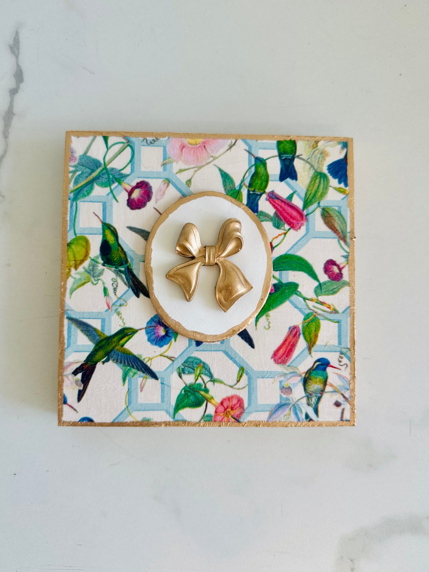 Using epoxy resin as our "bread and butter" medium, Eastwind creates pieces that are coated with an elevated enamel - mixed with paints, hand pressed flowers, and curated shells.